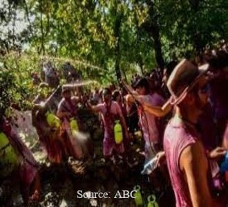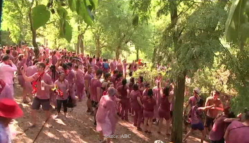 What: The ‘battle of the wine’ or ‘wine warfare’ is a chaotic, sticky and ultimately (depending on how much wine you drink) jolly battle, in which some 5000 people mark St Peters Day in the town of Haro, Spain by having an all night party and then heading to a local mountain to chuck, squirt, blast and douse each other in over 70,000 litres of red wine with whatever tools they can get their hands on without mercy.