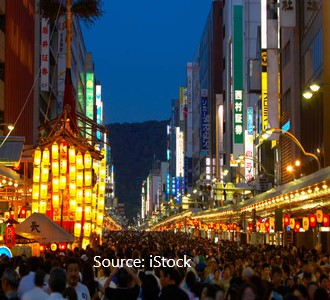 Duration: The festival lasts for almost the entire of the month of July, while smaller parties and processions take place over the course of the month, the key events and parade celebrations taking place from the 14 – 17th and from the 21st – 24th – with the 14–16th seeing the three pre-parade Yoi-yoi-yama street parties and the creation of the parade floats taking place in the streets of Shijo-dori from dusk to 11pm – which is then followed by the main event of the festival – the Yamaboko Junko grand procession.