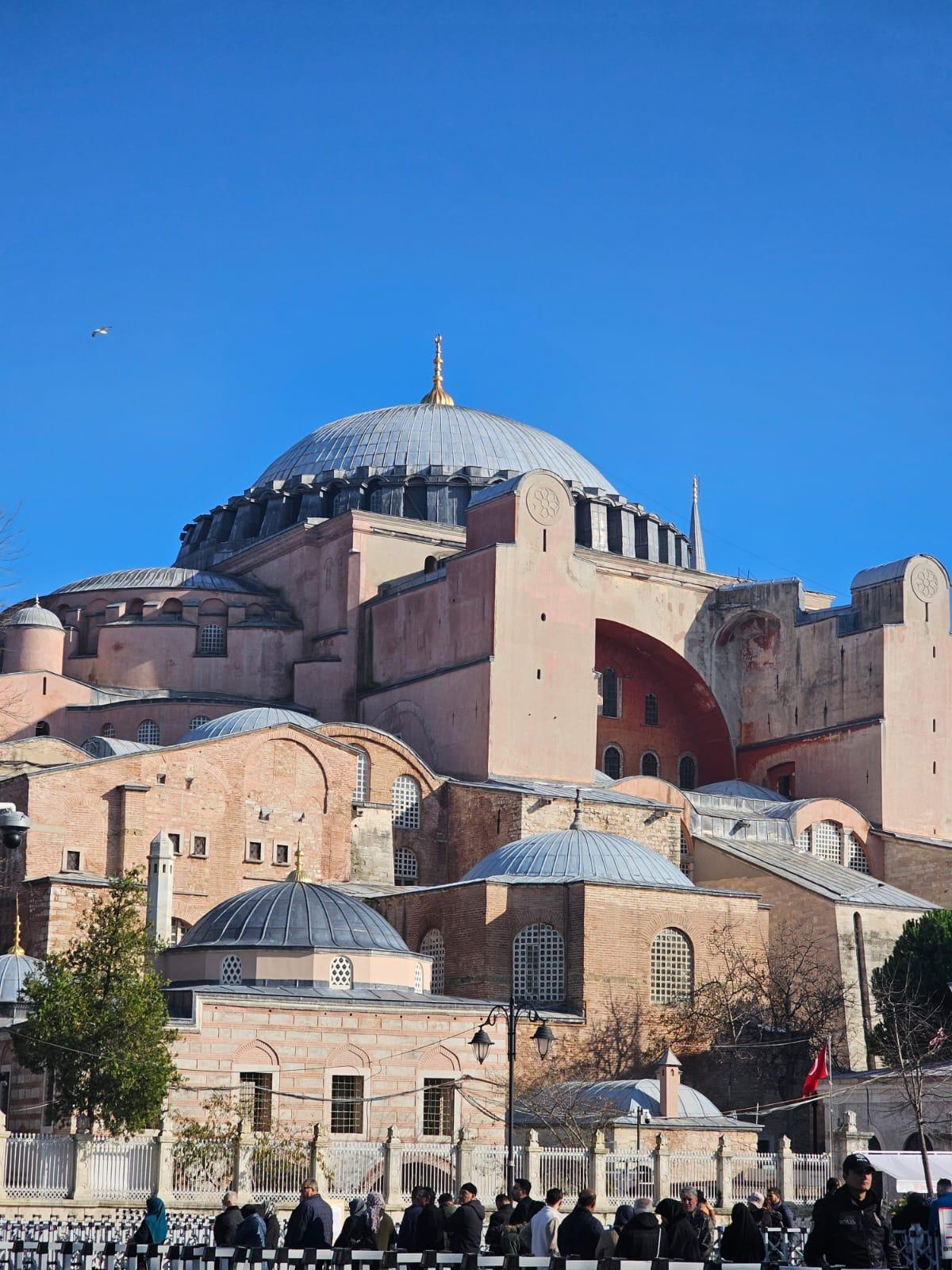 Journeying alongside the dancing fountains and green grass of Sultanahmet Park that adds to the beauty of the wonder and which make for stunning photos of the exterior of Hagia Sophia, the glowing pale blue Dome itself is rightly revered as an architectural feat– and is believed to have been one of the first time such a dome was applied to a catholic building.