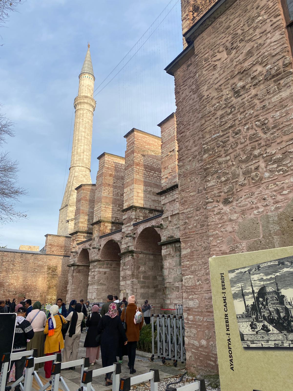 Exterior: From first approach towards Hagia Sophia from the beautiful Sultanahmet Park you’ll notice the towering and large dome surrounded by a series by four minarets and a pathway that leads you through a series of fountains to the glowing red walls of this incredible wonder.