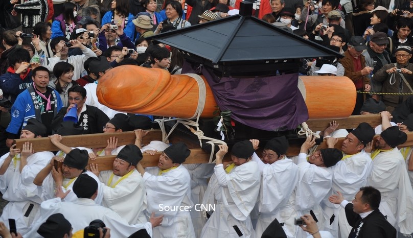 What: The ‘Penis Festival,’ Japan’s Honen Matsuri festival, held in the small town of Komaki, has been celebrated for the last 1500 years and seeks to bring a good harvest and for those that wish for it fertility — with the good wishes summoned through the parading of a giant wooden 400kg Penis, carved from a cyprees tree, through the streets of Kamaki and then climaxing with a spin around the Tagata jinja shrine.