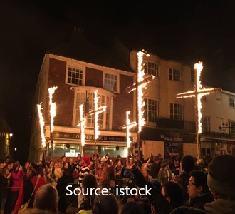 Duration: The Bonfire Night procession begins at 5pm, when the lights begins to fade, with the main procession taking place at 8pm and the fires and fireworks starting at 9pm and lasting till around 1am.