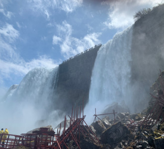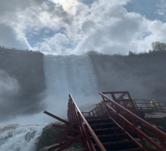From here it’s a wet experience! – so be sure to bring a waterproof poncho as you take a boardwalk right up and close to the Bridal Veil Falls where you can feel and hear the immense power of the smallest of the big three falls of Niagara come crashing down.