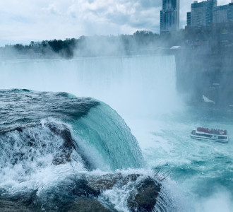 Lasting approximately 30 minutes, explorers will board the boat and be given a complimentary and much needed blue waterproof poncho and then set sail towards the falls in front of you – which come closer and close to view as you cross the rivers of Niagara. As you head towards the wonder, you’ll begin to experience the power of the falls as the boat begins to rock from side to side and you feel the spray of the falls against your face.