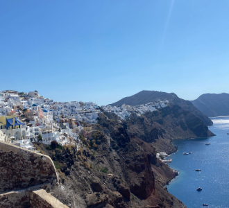 Alongside flying you also have the option of arriving by Sea – in the classic traditional way of reaching the island, but of course in more comfort. To arrive by ferry you’ll find the island serviced b cruise ships and ferries from Greece’s mainland and neighboring islands – with the cruise ships and ferries both arriving into a port found just 10 kilometres away from Fiori – where taverns and the beauty of a Santorini village awaits you.