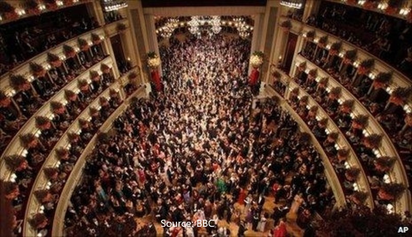 Where: The opera ball takes places in Vienna’s Opera House in Austria – where the main auditorium will be transformed into the worlds best elegant opera dance floor over the 30 hours before the event – with rows of seats removes, stalls added and the main stage for the dances being constructed by some 600 construction crew who work day and night to make sure the ball goes ahead.