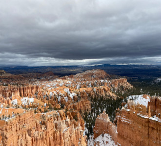 A viewpoint that can be particularly special in the winter – where the soft snow creates a mirage across the whole of the Canyon bringing it to life, the view from Farview offers a more serene and nature focused shot, with the cluster of green trees that lie at its heart helping to underline the forestsy and life that swells within Bryce canyon – that can sometimes get lost beneath the shadow of the Hoodoo’s.